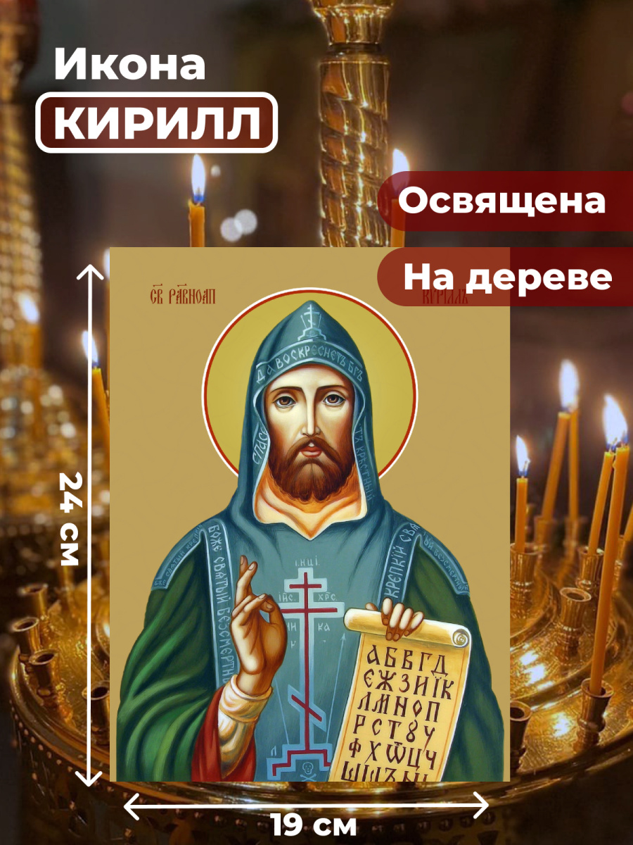 Купить Освященная икона на дереве "Святой Кирилл" Кирилл по лучшей цене с доставкой - интернет магазин №1 в России